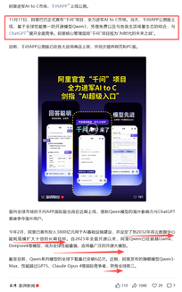 特别提示:下文涉及的题材或公司,内容罗列和篇幅长短,与后续涨跌无关,亦均非进行推荐,仅作研究辅助。投资者应自主决策,注意风险。 一、市场热点 阿里千问:阿里AI与ChatGPT展开全面竞争 ◇驱动:2025年11月17日盘中消息,阿里巴巴正式宣布“千问”项目,全力进军AI to C市场。千问APP基于全球性能第一的开源模型Qwen3,凭借免费,以及与各类生活场景生态的结合,与ChatGPT展开全面竞争。阿里核心管理层将“千问”项目视为“AI时代的未来之战”。(注:千问APP于11月16日在应用商