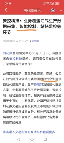 公司在油气服务业务上涵盖定向井技术服务,含油污染物治理技术服务、油田化学品生产及技术服务,增产增注技术服务,公共安全产品及装备,油气田地面工程建设等,公司在报告期内持续打造油田区块综合治理技术优势,为客户提供多方位、高端一体化服务;2019年9月25日回复称公司成功中标中俄东线天然气管道工程(北段)阀室橇装化一体设备间项目,为这条世界单管输量最大的长输天然气管道工程提供自动化系统解决方案和产品。
