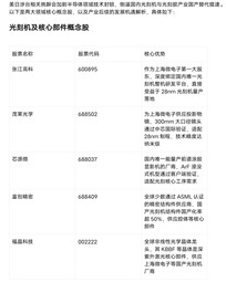 实现ArF光刻胶量产,彤程新材、晶瑞电材等KrF产品通过头部晶圆厂验证并获订单,恒坤新材等企业上市募资扩产。 两国涉台相关挑衅会加剧半导体领域技术封锁,倒逼国内光刻机与光刻胶产业国产替代提速。以下是两大领域核心概念股,以及产业后续的发展机遇解析,具体如下