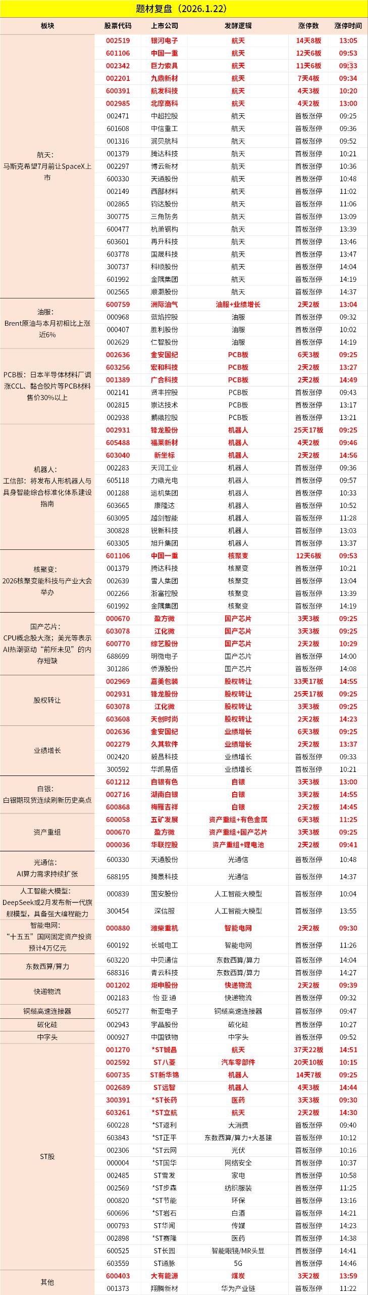 特别提示:下文涉及的题材或公司,内容罗列和篇幅长短,与后续涨跌无关,亦均非进行推荐,仅作研究辅助。投资者应自主决策,注意风险。 一、市场热点 商业航天:发射组网加速,产业催化不断 ◇驱动:1)2025年10月17日,千帆星座第六批组网卫星以“一箭18星”方式在太原成功发射; 2)2025年10月19日,中科宇航力箭一号遥八运载火箭在东风商业航天创新试验区发射; 3)2025年10月31日,长征二号F运载火箭将搭载神舟二十一号载人飞船在酒泉卫星发射中心发射。 4)2025年10月25日至27日,2
