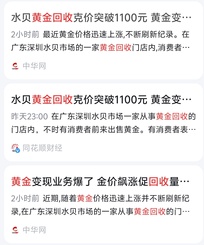 水贝黄金回收克价突破1100元 黄金变现业务激增