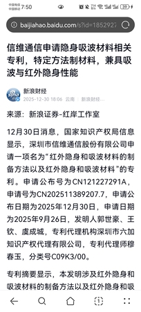 怎么评价信维通信取得的这个红外隐身材料新专利?