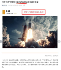 泰胜风能参投!民营火箭“发射王”星河动力启动IPO辅导备案
