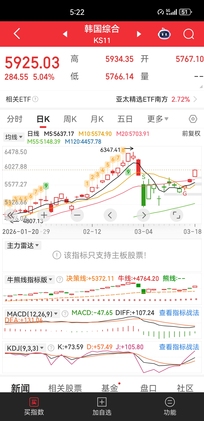 今天,韩国股市再度冲高。韩国交易所于KOSPI 200期货上涨5%后启动KOSPI指数熔断机制,程序化交易被暂停5分钟。截至收盘,韩国KOSPI指数上涨5.04%,报5925.03点。 尽管韩国市场石油进口依赖程度较高,能源危机尚未解出,由于内存芯片供应相对短缺,涨价持续,投资者纷纷涌入韩国股票基金。据EPFR数据,近期流入韩国股市的资金创下新的单周纪录。基于产业关链度,受益于人工智能芯片等行业引发的旺盛需求,投资者对存储芯片赛道的乐观情绪正进一步延升。据悉3月17日,韩国SK集团会长崔泰源在英