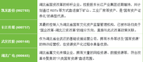 湖北国资改革概念股 湖北广电:省属国有控股企业,最终控制人为湖北广播电视台。 武汉控股:实控人为武汉国资委,是武汉市城建系统目前唯一的上市公司,主营业务聚焦于污水处理、自来水生产及隧道等。 东湖高新:最终控制人为湖北国资委,湖北省联合发展投资集团为公司间接控股股东。 微创光电:属湖北交投集团成员,实控人为湖北省国资委。 深地经济概念股 神开股份:业务涉及石油化工装备制造等领域,可受益于深地探测相关产业发展。 石化机械:在石油机械装备制造方面具有一定实力,有望在深地探测中发挥作用。 德石股份:专注