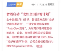 智谱启动“龙虾全国部署计划”,核心关联个股梳理
