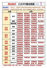 商业航天八大IPO概念梳理,带你领略行业新机遇! 商业航天迎政策利好, 科创板优先支持火箭企业, 产业链公司受关注。 投资需谨慎