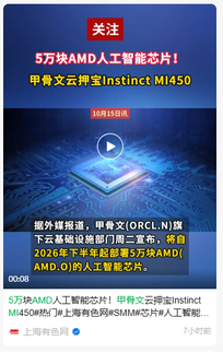 核心观点 1、AMD AI推理芯片开启规模化落地:甲骨文宣布2026下半年部署5万枚AMD M1450-AI芯片,明确将其定位为数据中心推理场景的核心算力载体,标志着AMD在AI算力领域的竞争力从“训练”向“推理”延伸,有望打破英伟达一家独大的格局。 2、一博科技是AMD“芯片-算力”链路的核心服务商:通过与AMD合作多年,一博提供高速PCB设计、SI/PI仿真分析+芯片测试板+客户参考板+PCBA一站式服务,深度嵌入AMD芯片从研发到市场化的关键环节,直接受益于M1450-AI的放量。 3、双