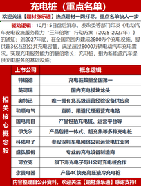 驱动逻辑:2027年底,全国建成2800万个充电桩! 10月15日盘后消息,发改委等部门印发《电动汽车充电设施服务能力“三年倍增”行动方案(2025-2027年)》的通知; 到2027年底,在全国范围内建成2800万个充电设施,提供超3亿瓦的公共充电容量,满足超过8000万辆电动汽车充电需求,实现充电服务能力的翻倍增长; 充电桩,指为新能源汽车提供充电服务的基础设施; 充电桩主要分为交流电(慢充)、直流电(快充); 1、慢充,充满电需要6-10小时,主要安装在住宅小区、公司单位为主; 2、快充,