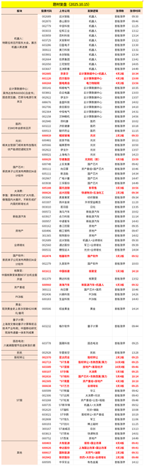 热点题材 英伟达下一代人工智能工厂将从当前的交流配电系统过渡到800VDC配电,京泉华、新特 孙姐,AIDC变压器:全球AIDC能源基建遇供给瓶颈、变压器产能或成卡点,金盘、顺钠 苹果将在越南生产桌面机器人和家庭中权。国光电器 京东汽车宣布联合宁德时代旗下的时代电服和广汽集团共同推出一款“国民好车’广汽集团 正在考虑的措施包括要求对出口到中国的软件进行出口许可。榕基软件、久其软件 新凯来子公司发布两款EDA设计软件。 蜜雪冰城开卖啤酒,售价5.9元起,蜜雪冰城鲜啤福鹿家已在全国28省布局1200