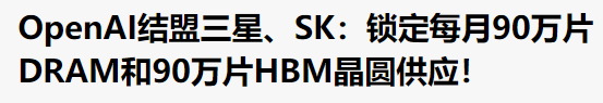 事件: 目前两家韩企的 DRAM 产能合计约每月 70 万片,若 90 万片目标达成,意味着产能提升近 30%。 TrendForce 分析指出,这一扩张节奏与英伟达 Blackwell 系列芯片出货、开源大模型带动的中小企业 AI 落地需求形成呼应,有望进一步推升行业景气度。 竞争格局: SK 海力士: 当前在 HBM 市场占据优势,已完成 HBM4 开发并具备量产能力,还锁定了英伟达、微软等定制化订单; 进度:海力士在初期设定规格标准方面处于更有利地位,且更有可能率先公布结果(摩根大通预测: