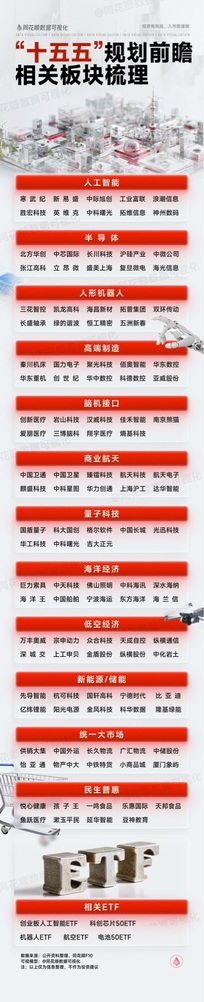 (西南证券) (一)“十五五”:迈向第二个百年奋斗目标的决胜期 在我国迈向第二个百年奋斗目标的过程中,将用3个五年计划完成到2035年基本实现社会主义现代化的目标:“十四五”奠定基础,“十五五”全面发力,“十六五”填平补齐。 “十五五”规划的编制分为前期研究、起草编制、征求意见、审批发布四个阶段。 “十五五”覆盖课题数量显著增加、课题领域也更加细化。 科技创新方面,“十五五”课题聚焦全球科技与产业变革、人才机制与创新能力提升;产业发展方面,涵盖数字经济、人工智能、服务业、医药卫生等重点方向。 (