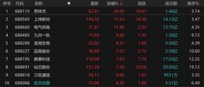 今日科创板小幅低开后盘中一度反弹至水上后再度回落,科创50微跌0.06%,报1405.41点。盘面上,机器人震荡走强,上纬新材(688585)涨逾15%;风电设备冲高回落,电气风电(688660)涨近12%;电池板块走弱,芳源股份(688148)跌近9%;个股方面,果链+并购概念思林杰(688115)封涨停。截至今日收市,156只个股收涨,423只个股收跌。 涨幅排行方面,思林杰封涨停板居首,上纬新材涨15.54%次之。 跌幅排行方面,帝奥微跌8.96%居首,芳源股份跌8.61%次之。 成交额方