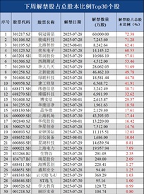 风险一:解禁 7月28日-8月1日有48家上市公司涉及限售股解禁;其中解禁股占总股本比例Top30个股为:铜冠铜箔、骏成科技、北路智控、奕东电子、常润股份、西测测试、华大九天、立新能源、绿联科技、建工修复、纬德信息、臻镭科技、博实结、华康洁净、晶华微、上海机场、华统股份、华星创业、亚钾国际、京仪装备、星湖科技、上海电力、生物谷、瑞星股份、海博思创、盛邦安全、云天励飞-U、ST逸飞、学大教育、丽臣实业。具体数据见下表: Tips:限售股解禁,一般来说属于利空消息,但对个股股价的影响还需综合考虑解禁