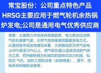 燃气轮机想成“能源系统的超级心脏”:既能给电网调峰“踩油门”,也能为舰船动力“提速度”,更能给炼化工厂“供能量”。它通过燃料燃烧驱动涡轮旋转发电,单机功率从几兆瓦到几百兆瓦不等,联合循环效率超60%,是天然气发电、海上油气开发、大型舰船的核心动力装备。我国燃气轮机产业早年依赖进口,如今正加速自主化突破,目标只有一个——打破国外技术垄断,撑起能源安全与国防装备的“动力脊梁”。 S常宝股份(sz002478)S:公司重点特色产品HRSG主要应用于燃气轮机余热锅炉发电;公司是通用电气优秀供应商