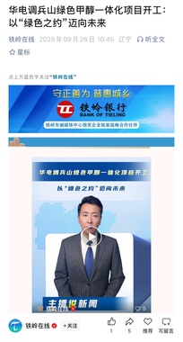 600396华电辽能-公司调10万吨绿色甲醇正式开工
