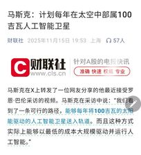 太空算力,新疆交建持股国星宇航。马斯克:计划每年在太空中部属100吉瓦人工智能卫星。目前在太空计算上,除了马斯克SpaceX与星链外,真正已经进入落地阶段的是中国。 新疆交建持有国星宇航股份比例 0.54% 国星宇航执行副总裁赵宏杰告诉《科创板日报》记者,公司早在2024年11月启动“星算计划”,并于2025年5月成功发射全球首个太空计算星座,在轨集群算力达 5POPS,具备支撑AI推理、遥感计算、低空经济等多领域需求的能力,真正进入常态化商业运营阶段。 国星宇航, 中国第二大民营商业航天公司,