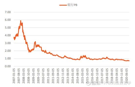 国庆闲来无事,重新思考了不同行业的估值逻辑,收获颇丰,今天先聊聊银行股破净那些事。 在大A散户的眼中,银行股是一道靓丽的风景,估值低,分红高,是很多散户价值投资的唯一真神和信仰。 无奈天不遂人愿,银行股PB从2007年的最高6倍一路跌到最新的0.71倍PB,搞得跟破产了一样。 说好的低估呢?为什么估值却不断创新低,破净后还有十八层地狱,真是苦不堪言,惨无人道。 不少银行股大V也是抱怨市场不公,凭什么所谓的酱油、医药估值动则三位数,银行股估值仅有个位数却还在不断下跌,我不信,我不服。 从他们的身上