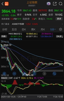 指数在从15分钟演化成30分钟区间中,其中有个关键点是,在形成30分钟区间的震荡扩展时,是否会破前面的15分钟盘整区间低点; 如果不破前15分钟区间低点,那么可能形成右侧30分钟盘整区间; 但如果破了15分钟前区间低点,那么就极大提升了左侧30分钟区间的可能; 目前从低级别5分钟级别上看,5分钟有形成第二个结构的可能,那么如果指数真的构成新的5分钟结构,那么可以肯定的是离开一笔破3859点; 而这个点位正好跟前15分钟区间相近,那么就是说从低级别上看有大概率会破这个点位,从而提升了30分钟形成左