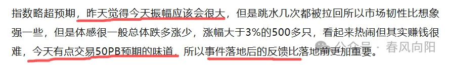 昨日复盘回顾 指数与市场定性 指数略超预期,昨天觉得今天振幅应该会很大,但是跳水几次都被拉回所以市场韧性比想象强一些,但是体感很一般总体跌多涨少,涨幅大于3%的500多只,看起来热闹但其实赚钱很难,今天有点交易50PB预期的味道,所以事件落地后的反馈比落地前更加重要。 市场标志性事件: 当前市场处于 “震荡上行周期” 机器人板块强度两天上万; 首开股份明日是短线情绪关注点;天普股份复牌补涨/补跌也会影响情绪; 短线情绪较好,短线赚钱效应较好,但整体赚钱效应一般; 首开6+4,单波175%,主板年