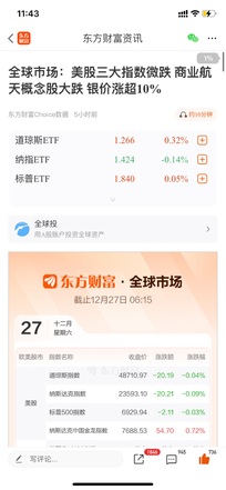 美股市场:美股三大指数12月26日收盘全线下跌。截至收盘,道琼斯工业平均指数比前一交易日下跌20.19点,收于48710.97点,跌幅为0.04%;标准普尔500种股票指数下跌2.11点,收于6929.94点,跌幅为0.03%;纳斯达克综合指数下跌20.21点,收于23593.1点,跌幅为0.09%。本周,道指累涨1.20%,纳指累涨1.22%,标普500指数累涨1.40%。 大型科技股涨跌不一,特斯拉跌超2%,谷歌、苹果、微软、Meta等小幅下跌;亚马逊、奈飞、英特尔小幅上涨。英伟达涨超1%,