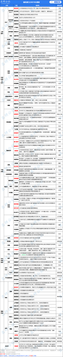 绝大数图表引用韭研公社【产业库】,更多图表可前往公社网站首页或APP工具栏【产业库】查看,欢迎点赞转发~ 【人形机器人/轴向磁通电机】图表 2025年12月30日,据券商纪要,上行β中重视机器人的几个新应用方向,26年围绕电机技术会持续变化,重点关注GaN、轴向磁通电机。 【特斯拉人形机器人】图表 2025年12月29日,据网传消息,供应商陆续北美拜访,特斯拉optimus发包在即。 【长鑫科技】图表 2025年12月30日,上交所更新长鑫科技集团股份有限公司(简称“长鑫科技”,即“长鑫存储”)