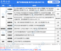绝大数图表引用韭研公社【产业库】,更多图表可前往公社网站首页或APP工具栏【产业库】查看,欢迎点赞转发~ 【国产半导体设备/离子注入机】图表 2026年1月17日讯,我国首台串列型高能氢离子注入机(POWER-750H)近日成功出束,核心指标达到国际先进水平。这标志着我国已全面掌握串列型高能氢离子注入机的全链路研发技术,攻克了功率半导体制造链关键环节,为推动高端制造装备自主可控、保障产业链安全奠定坚实基础。 【中科宇航】图表 2026年1月17日讯,中科宇航于近日辅导工作完成,成为继蓝箭航天后,