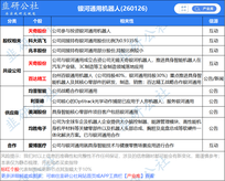 绝大数图表引用韭研公社【产业库】,更多图表可前往公社网站首页或APP工具栏【产业库】查看,欢迎点赞转发~ 【银河通用机器人】图表 2026年1月25日中央广播电视总台官宣,银河通用机器人正式成为总台2026年春节联欢晚会指定具身大模型机器人。银河通用成立于2023年5月,已推出人形机器人Galbot G1,目前已在商业、工业、医疗等场景应用。去年12月,银河通用宣布完成新一轮超 3 亿美元融资,投资方包括中国移动链、中金资本、中科院基金、苏创投、央视融媒体基金等,公司估值超过30亿美元。 【尼帕