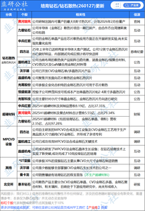 绝大数图表引用韭研公社【产业库】,更多图表可前往公社网站首页或APP工具栏【产业库】查看,欢迎点赞转发~ 【培育钻石/钻石散热】图表 2026年1月27日盘中讯,据知情人士透露,作为东京方面总额5500亿美元对美投资计划的一部分,日本与美国正考虑投资建设一座合成钻石生产工厂;同日,网传图片显示,黄河旋风参股河南超赢钻石科技有限公司董事长朱艳辉与英伟达黄仁勋会面,并展示印有英伟达logo的“钻石铜散热”的产品。 【网络附加存储(NAS)】图表 2026年1月27日盘中,券商纪要,AI NAS作为数