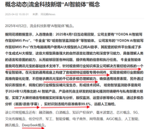 据同花顺数据显示,入选理由是:2025年4月1日互动易回复,公司主要有“YOXON AI智能写作鼠标M95 Pro”、“牛金金”和“哈勃智慧监测助手”等智能体。 公司发布的“YOXON AI智能写作鼠标M95 Pro”作为电脑端用户使用AI大模型的入口和AI助手,其配套的软件平台集成了多个生成式AI大模型,这些大模型具备强大的自然语言处理能力和深度学习能力,具备理解人类的语言和意图的能力,从而能够回答各种问题、提供有用的信息和执行任务。 牛金金智能体是我司在腾讯元宝的基础技术支持下,针对视音频行