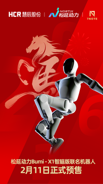 松延动力人形机器人即将亮相2026年央视总台春晚舞台。值此契机,其机器人智脑生态合作伙伴慧辰股份,携手7NOTE机器人星空场,正式开启基于松延动力机器人的Bumi-X1联名款人形机器人预售。该产品在松延动力Bumi机器人中融合慧辰股份HCR-“X”机器人智脑技术,并将于2月11日同步登陆多个线下体验中心,助力人形智能机器人走进寻常百姓家。 ···············································································