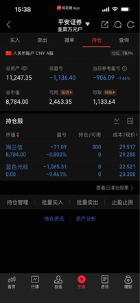 ▶情绪仓: 今天富满微又冲高10几个点,两天卖飞30多点……蓝色光标回撤4个点止盈了,下午追了神剑,浮亏……今天下午明显选错了,应该追巨力索具的,再升科技封板的时候板块没啥动静,巨力拉升的时候很多票跟着回升的 ▶趋势仓: 最近几天除了金属有色,就没有能打的板块,白银有色2板的时候犹豫了一下就目送到7板;反正除了现在已经不会去追的有色金属板块,也没有其他有持续性的,就只能继续躺平了 中国卫星,持股未动, 超捷股份,持股未动, 精测电子,本来预期今天冲高走的,进货都没冲高,最终小赚2个点走人; 飞沃