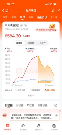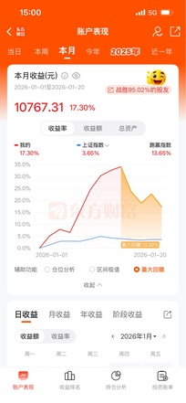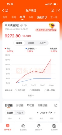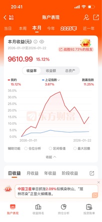 ▶情绪仓: 情绪仓11月从1万到1万3,12月又回到1万,2026年从一万元重新出发,开门黑,拿着乾Z光电没动,看明天能不能站住5日线…… ▶趋势仓: 今天太多亮眼板块了,使得商业航天板块内部分化,但其他板块目前看不懂,就还是继续在商业航天板块里折腾:: Zg卫星,持股未动; 信W通讯,T了6个点; 上海HX,T了9个点; 航天J电,下午直线拉升的时候,明显带动板块很多个股回升,就半路买了一层多,航天发、动、机,是不是可以轮到机来带队趋势上涨?明天看反馈 ▶尾盘仓: 鹭燕坚持到尾盘走了,控仓位没