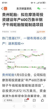 风水轮流转,立帖为正! 明年业绩0.6元,中长线7元以上! 三季报渐行渐近!机器人∽低价低估值机器人轮毂钢圈一体化-贵州轮胎000589净资产5.68元(股价仅4.6元),二季度单季业绩0.12元,三季度单季业绩会达0.17元左右(二季度原材料环比下降20%,原材料降本增效滞后二个月),预期三季度业绩0.33元,全年业绩0.45。轮胎行业唯一一家入选智能制造世界“灯塔工厂”,贵州轮胎000589行业数字化转型龙头企业 。贵州轮胎000589四季度投资12.6亿越南三期轿车半钢智能制造投产,明后年