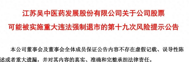 眼看高楼平地起,又眼看高楼又即将崩塌,对于持仓*ST苏吴(江苏吴中)的6.74万散户来说,等来的可能又是无数个不眠之夜。 在连续第19次公告公司股票可能有被实施重大违法强制退市风险后,*ST苏吴在11月25日晚间再次披露:公司收到《行政处罚决定书》认定: 1、公司未如实披露实际控制人,2018年至2023年年度报告存在虚假记载;2、虚增营业收入、营业成本和利润,未按规定披露关联方非经营性占用资金情况,2020年至2023年年度报告存在虚假记载和重大遗漏,已触及规定的重大违法强制退市情形,公司股票