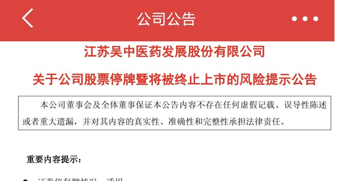 这次被套在st苏吴和st东通里的投资者,是不能怪谁的,st苏吴发布了19次强制退市风险提示公告,st东通发布了10次强制退市风险提示公告,一次次提示投资者股票可能因为重大违法强制退市,但这两家公司依然还有11万投资者在里面。 st苏吴今年七月就出了处罚结果,公司及相关责任人处以不同程度的罚款,股票触及强制退市,就这四个多月发布了19次强制退市风险提示公告,风险提示已经很到位,现在退市虽然没有赔偿,但风险提示很频繁。 凡是知道st苏吴的投资者也都知道它迟早会退市,而且股票前期也出现了连续跌停的走势