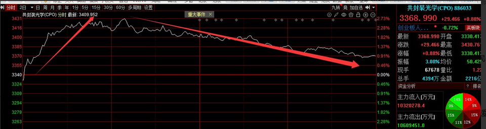 A股周四三大指数早盘表现还气势如虹,一度大涨,但无奈盘中出现跳水,最终沪指以微涨0.29%收盘,而创业板指则是从最高涨2.21%转成跌0.44%,深成指也从最高涨1.34%跳水至跌0.25%收盘。之所以会呈现出冲高回落的走势,其主要原因还是量能不足,引发的市场对后续反弹的担忧。 截至收盘,沪深两市共成交1.71万亿,较周三缩量700亿,其中2790家公司上涨,2447家公司出现下跌。从盘面表现来看,以易中天为代表的算力光模块的冲高回落,是昨天各大指数跳水的重要推手,而该板块之所以会出现跳水,主要