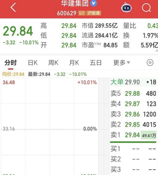 就因为在10月21日晚间的一纸股价严重异动公告中表示:在未来12个月内,上海国投公司不存在涉及公司的重大资产重组、注入的安排,令华建集团持续上涨的股价踩下了急刹车并挂上倒车挡,连续挨上了3个一字跌停板,股价一下子从40.93元掉到了29.84元。 自从传出借壳消息后,建艺集团的股价从年内的最低6.22元一路飙涨至10月21日最高的40.93元,区间最大涨幅达558.1%,股价的连续大涨,在该公告披露后的10月22日戛然而止。 10月22日,华建集团的股价直接开于一字跌停价36.84元,这一跌直接