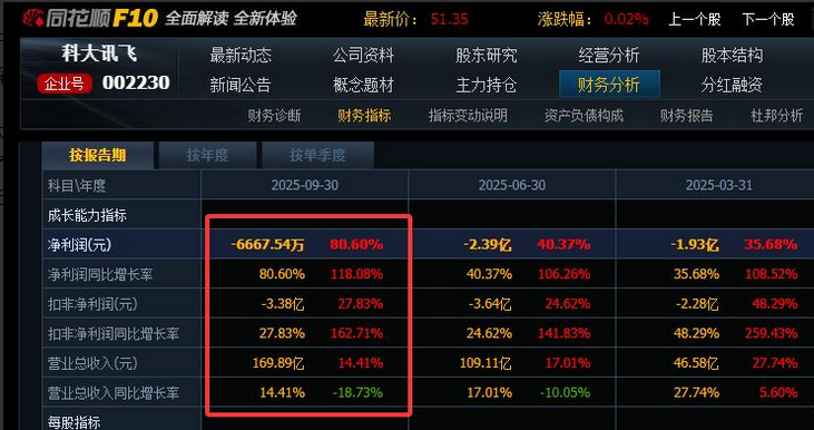 随着三季报进入密集披露期,越来越多的的公司开始披露三季报。 截至发文,昨晚共有59家公司完成了披露,其中有43家公司净利润同比出现增长,16家公司净利润同比出现下滑,而净利润增速最高的一家,当属永鼎股份,其净利润增速高达474%!具体什么情况,我们来盘点一下。 由于昨晚发布三季报的家数比较多,这里我们挑几家比较有代表性的公司来进行一下拆解。 科大讯飞,这是一家做智能语言的世界领先的龙头公司。 公司三季报显示,其营收实现了169.89亿元同比增长了14.41%,净利润虽仍亏损6667.54万但已同