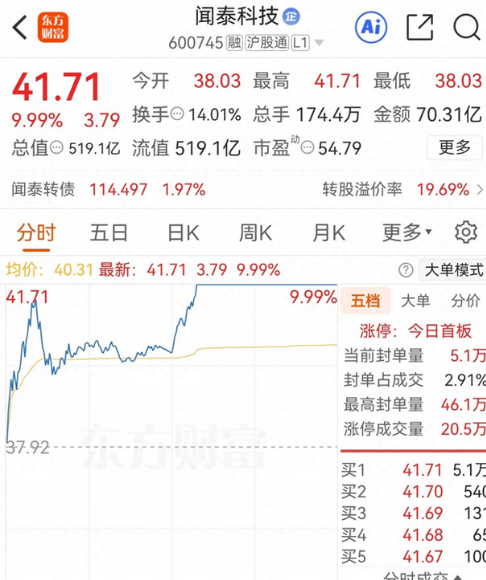 闻泰科技的15.18万股民今天也是喜迎丰收了,毕竟短短几天内股价从连续两个一字跌停到今天涨停,情绪的变化也是太刺激了。 今天开盘后股价直线拉升,并在下午封住了涨停,收盘股价报收41.71元,成交额达到了70.31亿,换手14.01%,封单超过了5.1万手,也就是说,有2个亿的资金在涨停板上排队。 上个星期股价还连续两日跌停,情绪也是比较低迷了,记得当时有股民也是留言说,恐怕要几个跌停才能缓过来,没想到现在盘面却出现了短暂反转。 估计是随着安世半导体的进展,给了市场一定的预期,业务上还是有一定想象