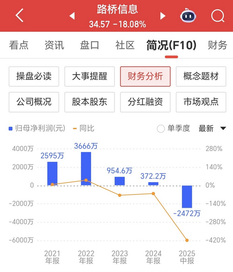 又是防不胜防,被立案调查的公司,当知道的时侯就已经踩雷,昨晚被立案调查这3家公司现有5.2万股东,其中两家因信息披露违法违规被立案调查。 这类情况的股票情节严重的可能连续跌停,如果股价在高位运行中,也有可能连续跌停,所以投资者要注意风险。 路桥信息,股价42.20,年内上涨510%,公司上市两年,六月股价曾涨到过96.88,一家亏损企业,一年不到拉了12倍,现在虽然已经回撤了一半多,但股价依然在高位。 昨晚发布公告,公司被立案调查,该公司现有6969名股东,虽然不多,但同比上一个季度增长了143