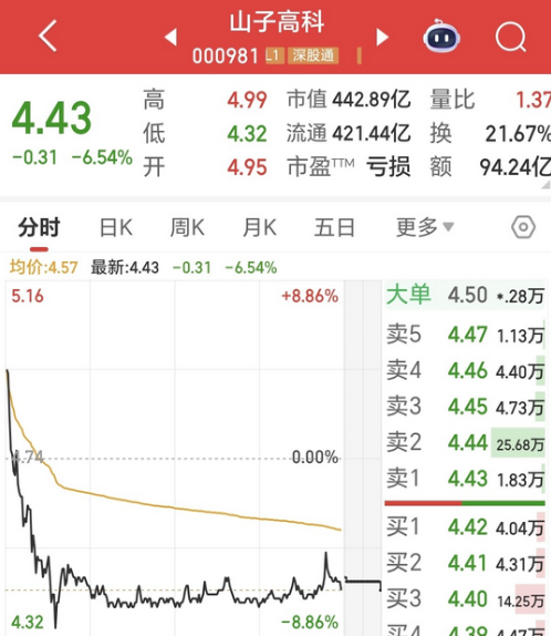 太惨了 高位重仓打板山子高科,次日跳水大跌6.5%,一夜亏损6.3万割肉