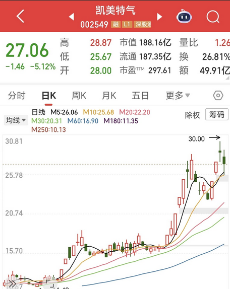 “新凯来概念”经过连续多日的爆炒后,于10月14日开始出现了分歧,相关概念个股纷纷高位跳水,今天其多中股票更是直接跌停或大幅下跌套上了一大波昨天追高的股民。 有位股民就很倒霉,其在10月14日同时满仓买入涉及新凯来概念的凯美特气10100股,成本价为28.62元;涨停价买入深纺织6000股,累计投入本金近39万元。 凯美特气,该股从8月14日的最低11.48元涨至10月14日的最高30.00元,2个月时间的最大区间涨幅已达161.33%。 今天该股小幅低开于28.00元,开盘后的股价稍有冲高后即