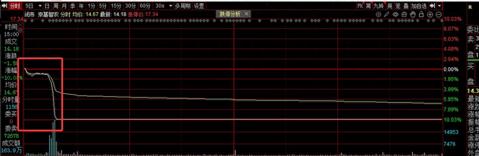 今天对于持有京基智农的投资者来说,有点郁闷。连续调整多日的大盘,都出现大幅反弹了,公司的股价却在盘中出现了闪崩! 开盘的时候,公司股价还没有什么异样,甚至还略微高开了1分钱。但开盘不久,公司股价便开始转跌,到这也还算是正常。但9点40刚过,公司股价便开始大幅跳水了,短短五分钟不到,股价就奔向跌停板了。截至收盘,其封单依然高达7万多手,逾1亿资金,在跌停板上,准备割肉出逃。 那么,究竟是什么样的原因,让公司股价出现闪崩了呢?我们来看一下。 在今年10月28号的时候,公司发布公告称,公司控股股东京基