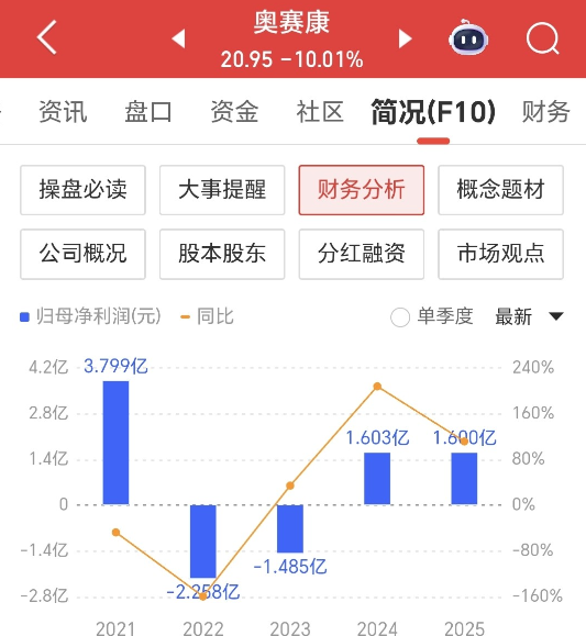 经过持续近2个月的下跌调整,奥赛康的股价从8日1日的最高29.00元一度掉到9月23日的最低20.44元,区间最大跌幅达29.51%,跌跌不休的股价令高位被套和途中“抄底”进场的股民苦不堪言,已经不知该如何应对了。 奥赛康,公司主要从事原料药及制剂研发、生产和销售业务,目前场内有持仓股民1.96万户,公司业绩在连续2年亏损3.74亿元后,2024年扭亏为盈1.6亿元,今年上半年再盈1.6亿,公司营收和业绩有持续向好趋势。 前期的股价从年初的最低11.88元,历经几波上涨后,于8月1日涨至最高29