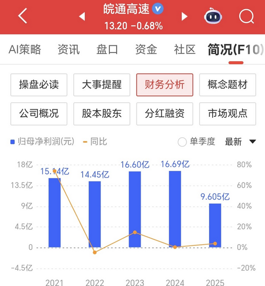 看到再次收绿的股价,持仓皖通高速的1.7万散户在此已经躲了整整3个月的牛市,而持续下的股价在他们盼星星盼月亮的等待中始终没有等来有效反弹的那一天。 皖通高速,和其他大多数高速公路股一样,公司每年有着稳定的营收和业绩及不菲的分红,其盈利能力和股息率在和同板块个股的横向对比中也是处于前列的,在前期大盘指数持续调整的过程中,和板块内其他个股一起对维护指数的稳定也起到了一定的作用。 2019年至2024年,皖通高速的股价持续上涨,从最低的2.34元一路涨至2024年的17.05元,今年又从2月份的最低1