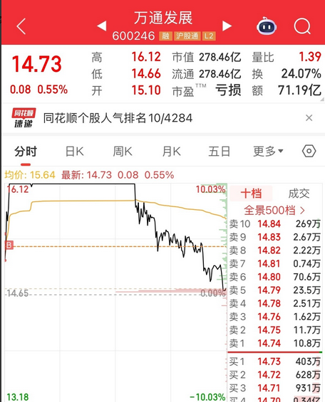 三大股指齐齐跳水,股票绿油油的一片,星期四收盘,估计大多数股民的钱袋子多多少少都要被掏一点出去。 有位广东股民今天满仓打板万通发展,盘中遭遇了该股的炸板跳水,一天下来的损失也是不少。 万通发展,公司自8月14日宣布拟跨界收购数渡科技事宜后的股价在前期也是经历了一番波折,连续涨停后正遭受连续2个跌停之际在8月18日曝出公司实控人、董事长被采取拘留措施的消息,随后其股价再遭一跌停后才开始他正式的表演。 此后其股价开始一路飙升,热度始终不减,今天该股高开于15.10元,开盘后的股价迅速冲刺封板涨停价1