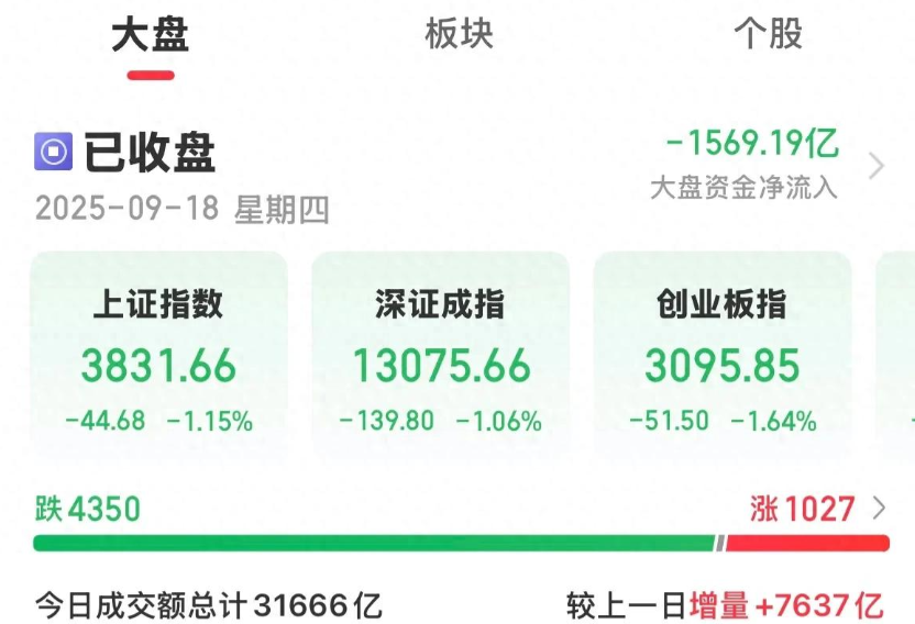 这走势有点防不胜防,上去三大指数低开高走个股普涨,大盘差0.04就站上3900点,正当大家以为稳了的时候,午后三大指数集体跳水,而且跳水后有进场资金参与,但小幅反弹一下,接下来跳水幅度更大。 进场那点资金根本阻拦不了出去的资金,除旅游及酒店、橡胶制品、汽车服务及其他小幅上涨外,其它板块和概念均下跌。 贵金属、工业金属、小金属、黄金概念,证券、期货、稀土永磁、互联网电商、养殖业、光伏设备、贸易、云游戏、房地产、煤炭加工等跌幅居前。 涨停股票午后集体炸板,工业富联、三花智控、万通发展、巨轮智能、和而