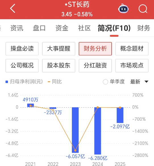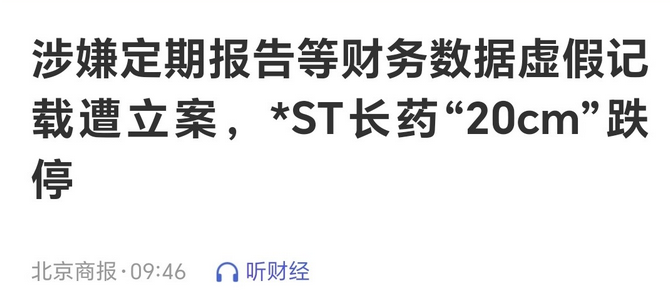 又一药企因涉嫌财务数据虚假记载被立案调查,今天的股价直接20%跌停于2.76元,1.42万持仓散户就此被闷其中,承受企业造假带来的后果。 *ST长药(长药控股),上市于2014年8月份,公司主要从事中药饮片的研发、生产和销售等业务,上市初期2015年的股价一度曾达76.99元,随后的股价一路下跌不止。 2024年,公司营收断崖式暴跌超90%,直接掉到1.12亿元,而其业绩则从2022年至今累计亏损14.67亿元,经营状况正处于持续恶化状态。 今年4月22日起,公司因为2024年度经审计的期末净资