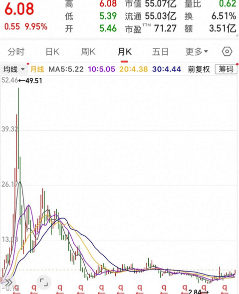 有些股票真的很难预测它的走势,一般回调时间长的三五年就可能一个周期,短的几个月或一年就可能一个周期,而这只股票已经10年了还是没有什么起色,早期抄底的已经等得心灰意冷。 该股10年前也曾有过自己的高光时刻,股价涨到过49.51,没想到这一回调就是十年之久,现在股价还在底部徘徊,期间最大跌幅到过2.80元,硬是从高点跌了95%下来。 那么也意味着高点进去的投资者如果没有止损,已经有损失了95%的了,大头亏完了,该股下跌时实际速度很快的,三年时间从49跌到了4元,所以被套的人并不少,以为急跌后会快速